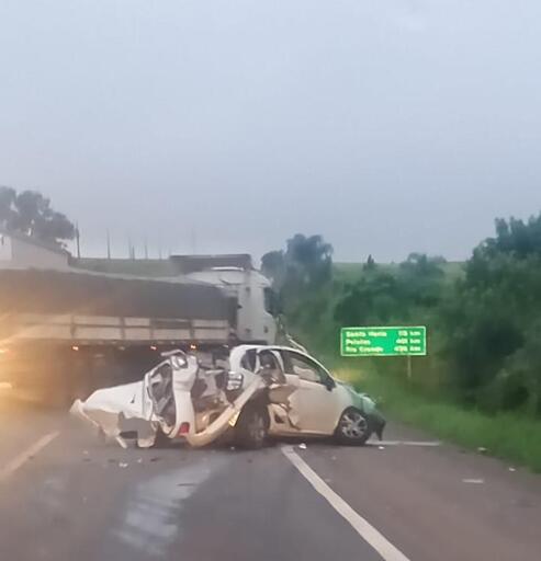 Um homem de 63 anos morreu em acidente envolvendo o carro em que estava e dois veículos de carga, em Cruz Alta, por volta de 6h15min desta quinta-feira (13). De acordo com a Polícia Rodoviária Federal (PRF), o homem morreu no local do acidente, no km 207 da BR-158. O automóvel da vítima, um Citroen/C3, tem placas de Palmeira das Missões.