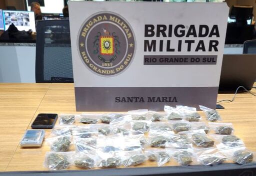 Um jovem de 20 anos foi preso em flagrante por tráfico de drogas em Santa Maria, durante ação da Força Tática do 1º Regimento de Polícia Montada (1º RPMon), da Brigada Militar. A abordagem ocorreu após denúncia sobre a entrega de entorpecentes na Rua Duque de Caxias, na noite de sábado (23).