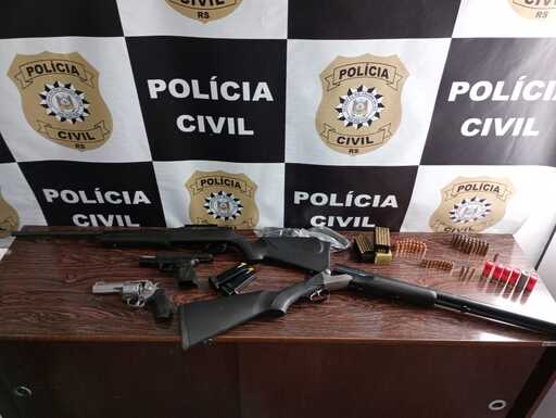 Conforme a Polícia Civil, durante o cumprimento da ocorrência, foram apreendidas quatro armas de fogo e munições que seriam legalizadas. Com isso, foi realizada a suspensão do seu direito de posse de arma de fogo.