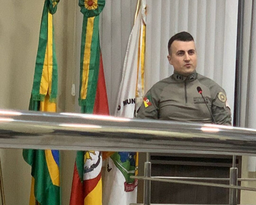 Soldado Guterres, 34 anos, discursa após ser homenageado na Câmara dos Vereadores de São Martinho da Serra