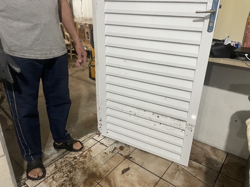 Dentro da casa do aposentado, o cenário era de lama, água barrenta e folhas oriundas da chuva intensa. Marcas da sujeira ficaram espalhadas pela cozinha, enquanto baldes eram utilizados no chão para auxiliar na limpeza e na tentativa de remover a água que entrou no imóvel. Para o morador, o problema é recorrente e tem origem no manejo incorreto dos resíduos na via.