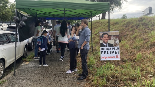 Com cartazes pedindo justiça pelo parente, a família de Felipe Rita se reúne para aguardar desdobramentos da audiência. Os réus, Ariane e Elson, que respondem em liberdade e não moram na cidade, serão ouvidos no formato virtual. Testemunhas de acusação e de defesa também foram intimadas a prestar seus depoimentos.