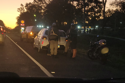 O Batalhão Rodoviário da Brigada Militar também atende a ocorrência e organiza o fluxo do trânsito, que não tem bloqueios.