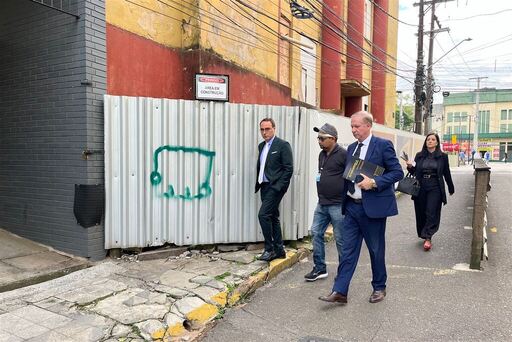 Registro do depoimento em Santa Maria, no dia 30 de abril. Advogado Barreiro, à dir., e ao seu lado o motorista Rodolfo Bopp.