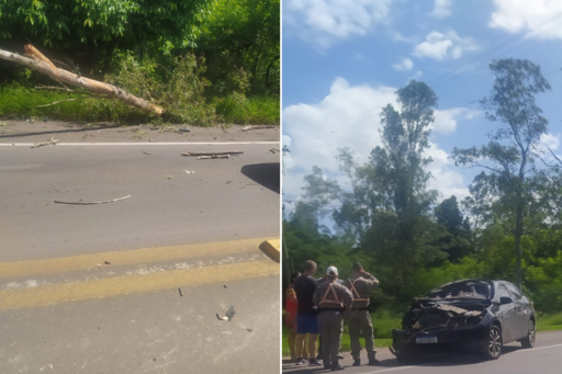 De acordo com o Comando Rodoviário da Brigada Militar (CRBM), uma árvore de eucalipto, que estaria seca, atingiu a frente de um veículo que transitava sentido Centro-Camobi. Apesar do forte impacto e dos danos materiais, o condutor do Toyota Corolla, um homem de 41 anos, não se feriu.