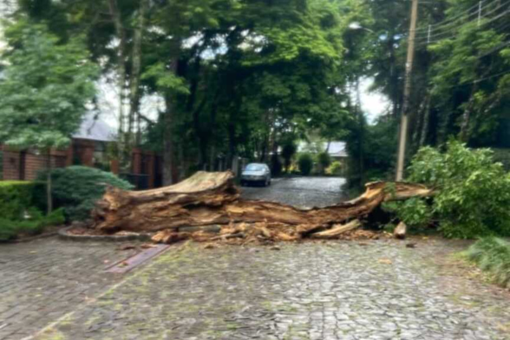 Uma árvore que caiu foi retirada pelo Corpo de Bombeiros na manhã desta quinta-feira (3) na Rua Alameda Sibipiruna, no Bairro Cerrito, em Santa Maria.