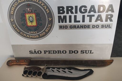 A guarnição deslocou para averiguar ocorrência em andamento e, no endereço informado, abordou o indivíduo no interior de um veículo, sendo localizados e apreendidos com ele um facão com lâmina de aproximadamente 50 cm e uma faca.