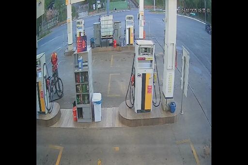 As imagens são do sistema de monitoramento do estabelecimento e, devido à distância e a obstáculos, como uma coluna do posto, a visibilidade da cena completa fica prejudicada. Pelo ângulo de gravação, é possível ver os veículos estacionados na Avenida Governador Walter Jobim. O registro indica que o crime ocorreu por volta das 18h54min de quinta-feira (13). O policial chega dirigindo o Fiat Uno, desce e caminha em direção ao Fiat Siena, de sua propriedade, onde estavam a mulher e o jovem.