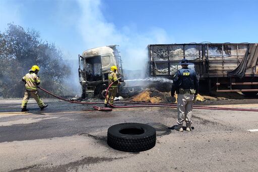 Conforme as informações, o fogo provocou apenas danos materiais, não havendo registro de feridos. Após o incidente, o veículo permaneceu sobre a pista à espera de remoção.