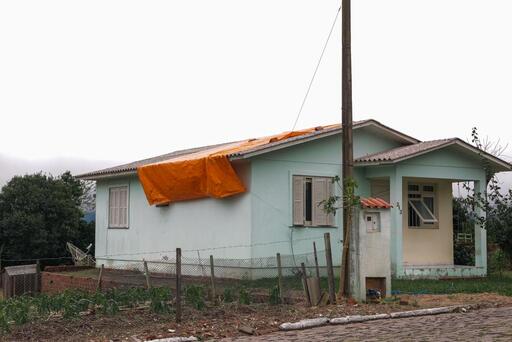 A casa dos pais de Gilberto também foi fortemente atingida e precisou ser coberta por lonas, pois as telhas terão de ser trocadas.  Quando a reportagem esteve no local, o irmão dele estava em cima do telhado da casa analisando a situação, para ter uma ideia do que precisará ser consertado.