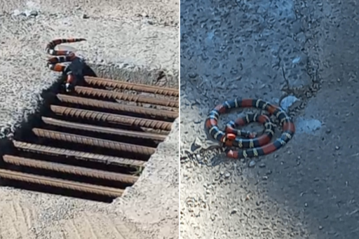A moradora comenta que já tentou contato com o responsável pelo terreno, porém não obteve sucesso. Formada em Biologia, Vera afirma que se tratam de corais verdadeiras, por causa do formato triangular da cabeça e do desenho do corpo dessa cobra, que possui a lista vermelha maior em evidência: