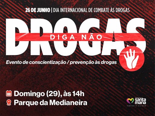 Um evento neste fim de semana, em Santa Maria, marcará o Dia Internacional de Combate às Drogas. A ação ocorrerá às 14h de domingo (29) no Parque da Medianeira.