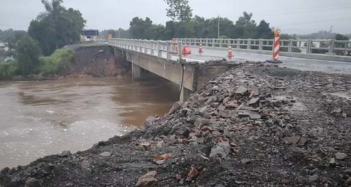 • ERS-511, Km3, distrito de Arroio Grande: Bloqueio total por queda na cabeceira da ponte