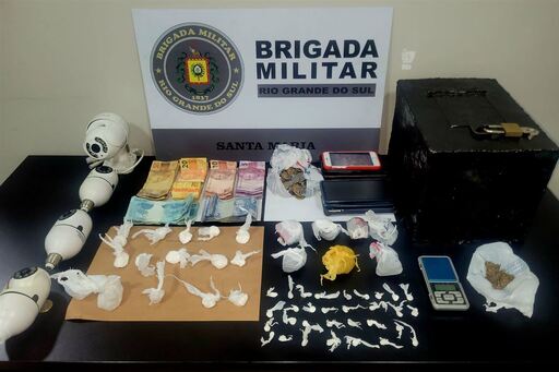 Ao chegarem no local indicado, por volta das 16h, os policiais avistaram uma mulher que correu para dentro da casa e tentou descartar uma porção de maconha no banheiro. Durante a revista, os militares encontraram um cofre contendo cerca de 147 gramas de maconha, dinheiro, moedas, celulares, quatro câmeras de monitoramento, uma balança de precisão e porções de cocaína e crack.
