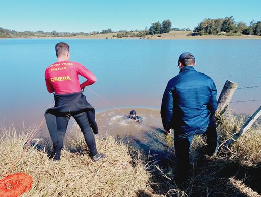 Mergulhadores do Corpo de Bombeiros Militar de Santa Maria fizeram buscas nesta quarta em açude na localidade de Rincão dos Machados