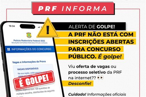 A instituição reforça que o ingresso na carreira da Polícia Rodoviária Federal ocorre exclusivamente por meio de concurso público, realizado por empresa especializada, contratada especificamente para essa finalidade. Atualmente, não há processo seletivo aberto nos moldes divulgados pelo site fraudulento.