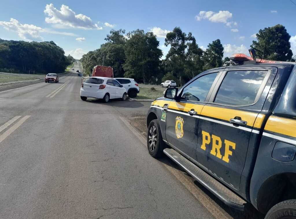 A Polícia Rodoviária Federal (PRF) atendeu, na tarde de quinta-feira (2), um acidente do tipo colisão lateral no km 401 da BR-287, em Santiago.
