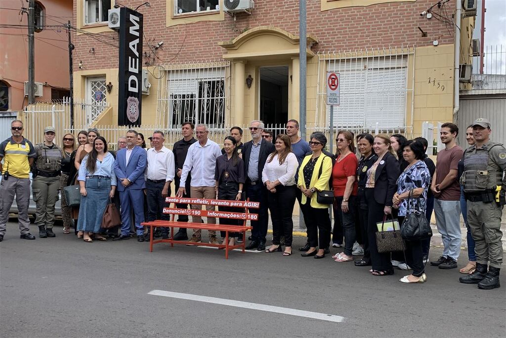Mais um instrumento simbólico de enfrentamento à violência contra a mulher passou a integrar a paisagem urbana de Santa Maria na manhã desta sexta-feira (20). O sexto Banco Vermelho do município foi instalado em frente à Delegacia Especializada no Atendimento à Mulher (Deam), na Rua Duque de Caxias, reforçando a campanha de conscientização e combate ao feminicídio.