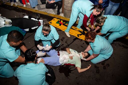 A Rua Professor Braga, no Centro de Santa Maria, foi bloqueada na noite desta quarta-feira (13) para uma simulação realística promovida pelo Senac. A atividade, que contou com apoio da Guarda de Trânsito, envolveu alunos do último módulo do curso Técnico em Enfermagem no atendimento a um acidente de moto fictício, com cenário de múltiplos ferimentos graves. O objetivo foi preparar os futuros profissionais para atuarem em situações de urgência e emergência.