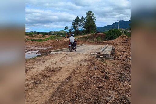 A ponte original, que permitia a passagem sobre o rio, foi levada pelas enchentes em 30 de abril. Desde lá, duas pontes móveis já foram construídas pelo Exército.