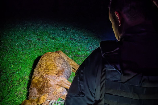 No local, os policiais encontraram três bovinos da raça Red Angus amarrados pelas patas, prontos para serem retirados da propriedade. A cerca de acesso ao campo havia sido cortada, e foram apreendidos no local uma corda, um alicate de corte e um rolo de fita de catraca.