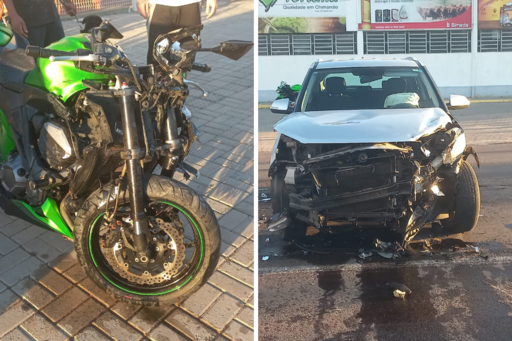 O acidente envolveu um carro modelo Hyundai Creta e uma motocicleta Kawasaki 800cc. O condutor da moto, um homem de 30 anos, ficou ferido e foi conduzido pela ambulância do Samu para o Hospital Universitário de Santa Maria (Husm), mas não corre risco de morte. Ele estaria com a Carteira Nacional de Habilitação (CNH) vencida.