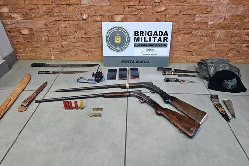 Com os suspeitos detidos foram apreendidos duas espingardas calibres 20 e 24, 24 munições intactas e duas deflagradas, quatro facas, um facão, um rádio comunicador, uma calça camuflada, uma touca e três aparelhos celulares.