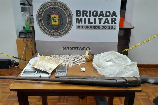 Um homem de 39 anos foi preso na noite de quinta-feira (24) no Bairro Gaspar Dutra, em Santiago, ao ser flagrado com drogas, uma arma e dinheiro. Policiais da Força Tática do 5º Regimento de Polícia Montada (5º RPMon) realizavam patrulhamento quando visualizaram o suspeito, que foi abordado e revistado.