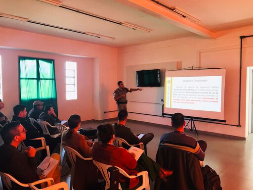 A atividade teve, além das palestras, orientações de abordagens e tiros de armas não letais. As ações ocorreram no quartel do 1ºRPMon, na Rua Pinto Bandeira, no Bairro Nossa Senhora das Dores.