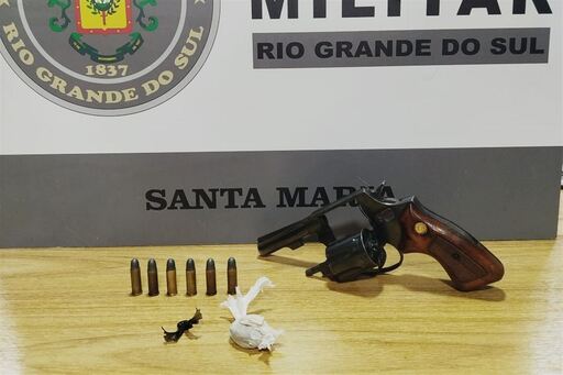Um jovem de 21 anos foi preso por porte ilegal de arma e posse de entorpecentes por volta das 9h desta quinta-feira (5), na Rua Santos Dumont, na Vila Carolina, em Santa Maria. Durante a ação, policiais da Força Tática e da Ronda Ostensiva com Apoio de Motocicletas (ROCAM) apreenderam um revólver calibre 38 com seis munições, além de uma porção de maconha e uma pedra de crack.