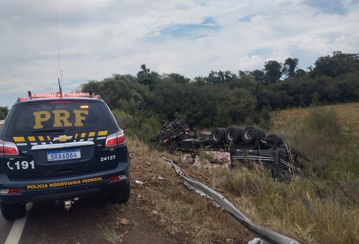 De acordo com a Polícia Rodoviária Federal (PRF), o veículo tracionava um semirreboque quando houve a saída de pista. O condutor, morador de Nova Esperança do Sul, não sofreu ferimentos.