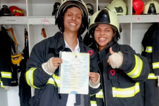 "Ficamos imensamente felizes em poder fazer parte deste momento único e de certa forma inusitado, não é todos os dias que se tem casamento em uma unidade de bombeiros!