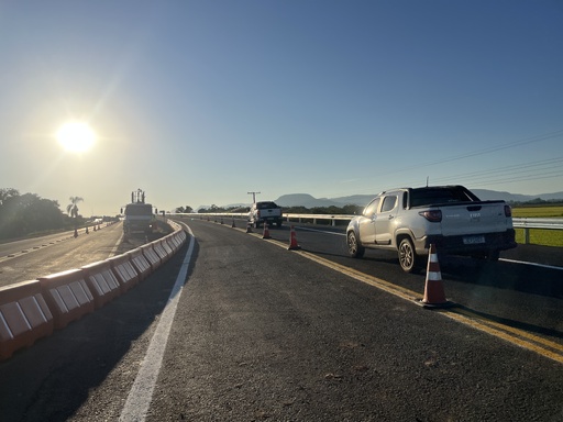 Com a liberação, a rodovia voltou agora a ter trânsito normal, com uma pista em cada sentido e sem limite de peso ou tamanho de carretas e caminhões. Os motoristas precisarão ter atenção, pois a nova pista e a nova ponte ficam do lado direito da rodovia, no sentido Porto Alegre-Santa Maria, tendo um leve desvio lateral para acessar a nova ponte. Já as pontes metálicas do Exército deixaram de ser usadas.