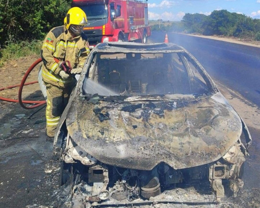 As chamas foram controladas e foram registrados somente danos materiais, pois o carro ficou destruído. Ninguém se feriu.
