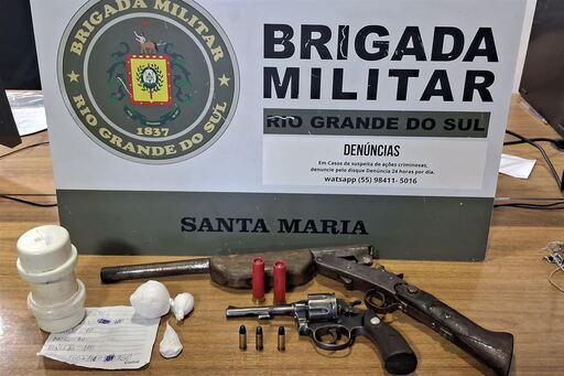 Um homem foi preso na manhã deste domingo (31) por tráfico de drogas e porte ilegal de arma, na Cohab Fernando Ferrari em Camobi. Com o suspeito foram apreendidos três porções de cocaína pesando 32 gramas, uma garrucha calibre 28 com duas munições, um revólver Taurus calibre 32 com três munições e um papel com anotações do tráfico.