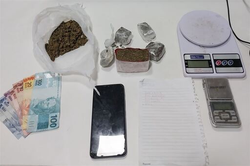 Conforme a ocorrência, a guarnição ao verificar a denúncia, chegou ao local onde localizou o suspeito que estava de posse de 200 gramas de maconha, duas balanças de precisão, um telefone celular, anotações do tráfico e R$ 152.
