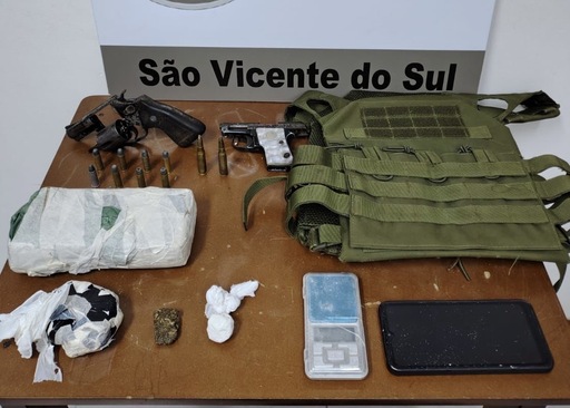 Um jovem de 20 anos e um homem de 31 foram presos por porte ilegal de arma e tráfico de drogas na noite de quarta-feira (29), na Estrada Timbaúva, em São Vicente do Sul. Um dos suspeitos já havia sido detido horas antes por posse de arma.